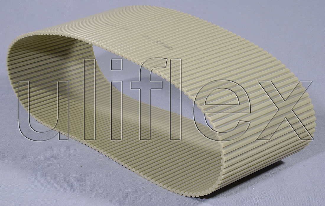 1. Las correas de sincronización de PU termoplástica moldeadas se producen en mangas en longitudes estándar y se cortan al ancho de la correa solicitada. Disponible como verdaderamente interminable y sin articulación.